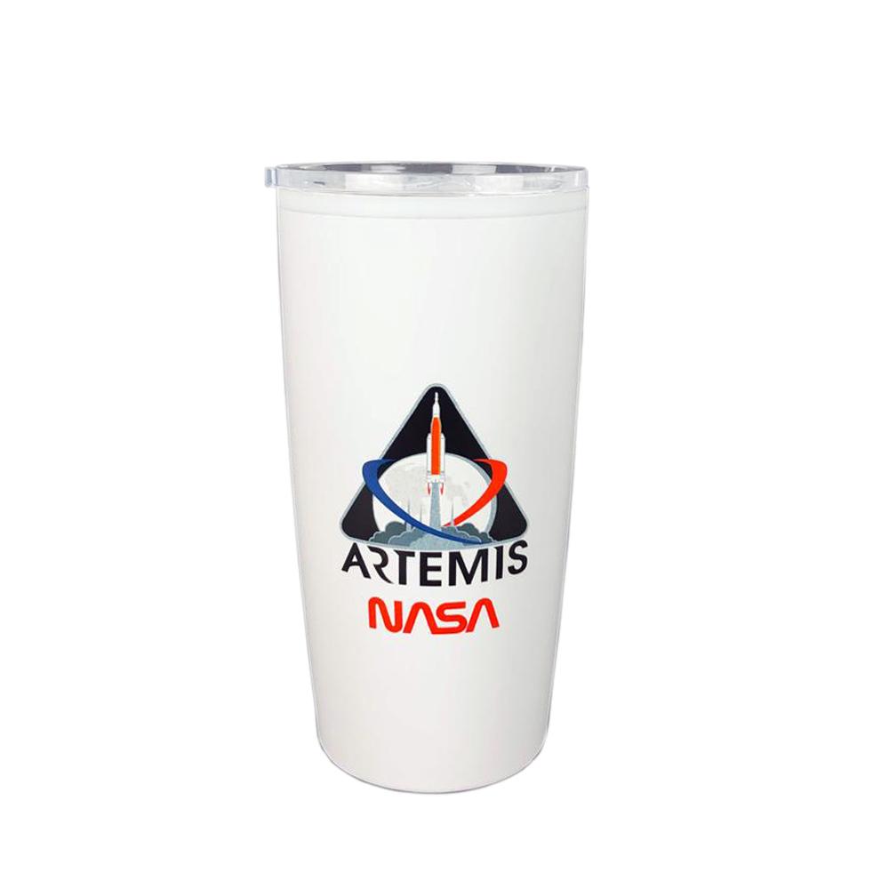 O Copo térmico Nasa do modelo Artemis é produzido em plástico e inox, mantendo por mais tempo sua bebida predileta, sua tampa de acrílico possui vedação de silicone na borda e na saída da bebida, fundo com em EVA para não escorregar com facilidade em superfícies lisas. Capacidade de 535ml e altura de 17,5cm