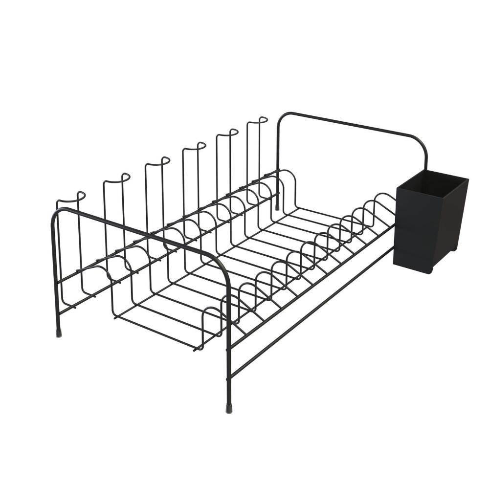 Fabricado em aço carbono com acabamento epóxi preto, porta talheres fabricado em plástico (polipropileno) preto.