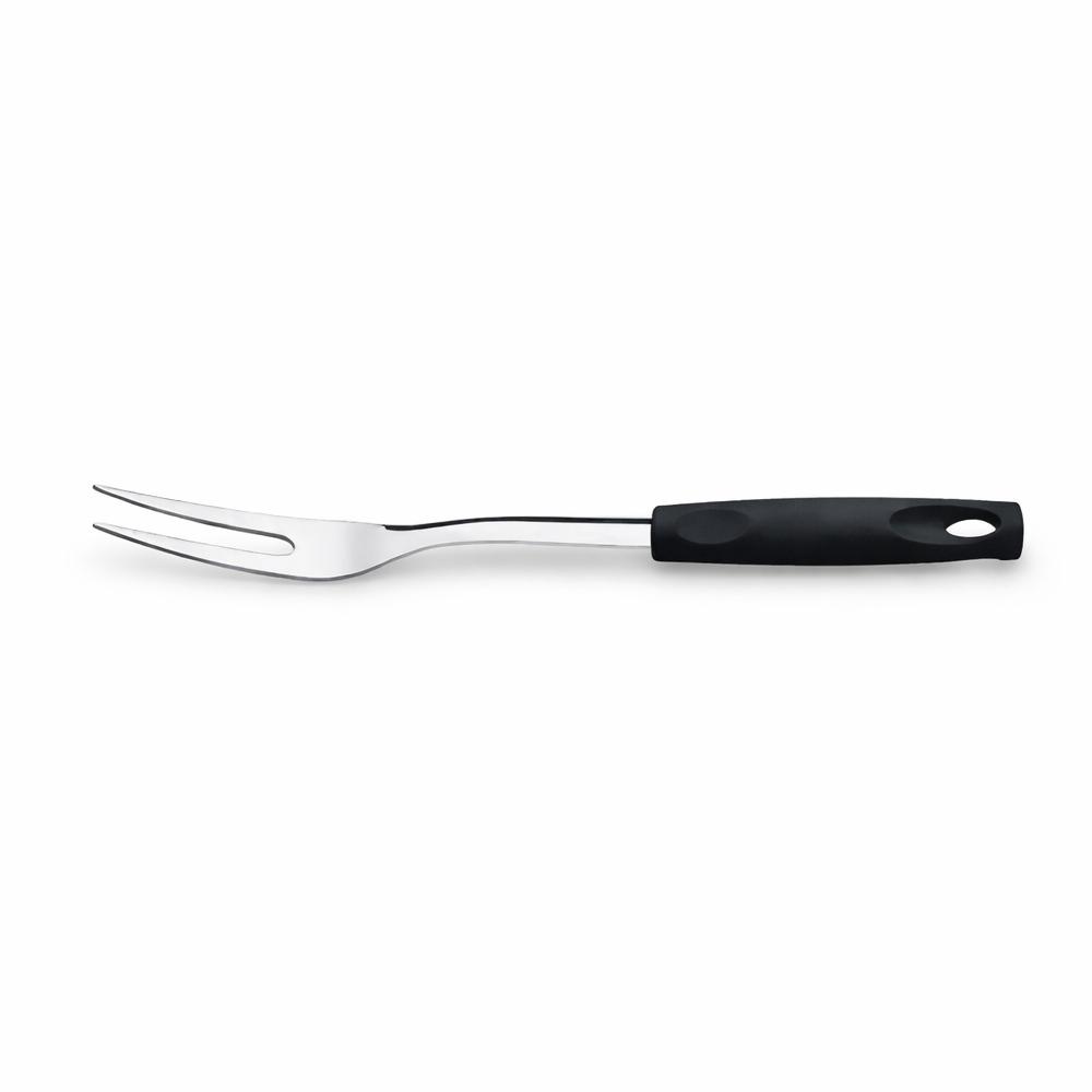 Seu cabo em polipropileno na cor preta proporciona conforto ergonômico, excelente pegada e maior controle ao trinchar carnes assadas, aves, pernis e cortes especiais. Ideal tanto para uso diário quanto em ocasiões especiais como churrascos, jantares e festas, o garfo traz funcionalidade e estilo à sua cozinha.