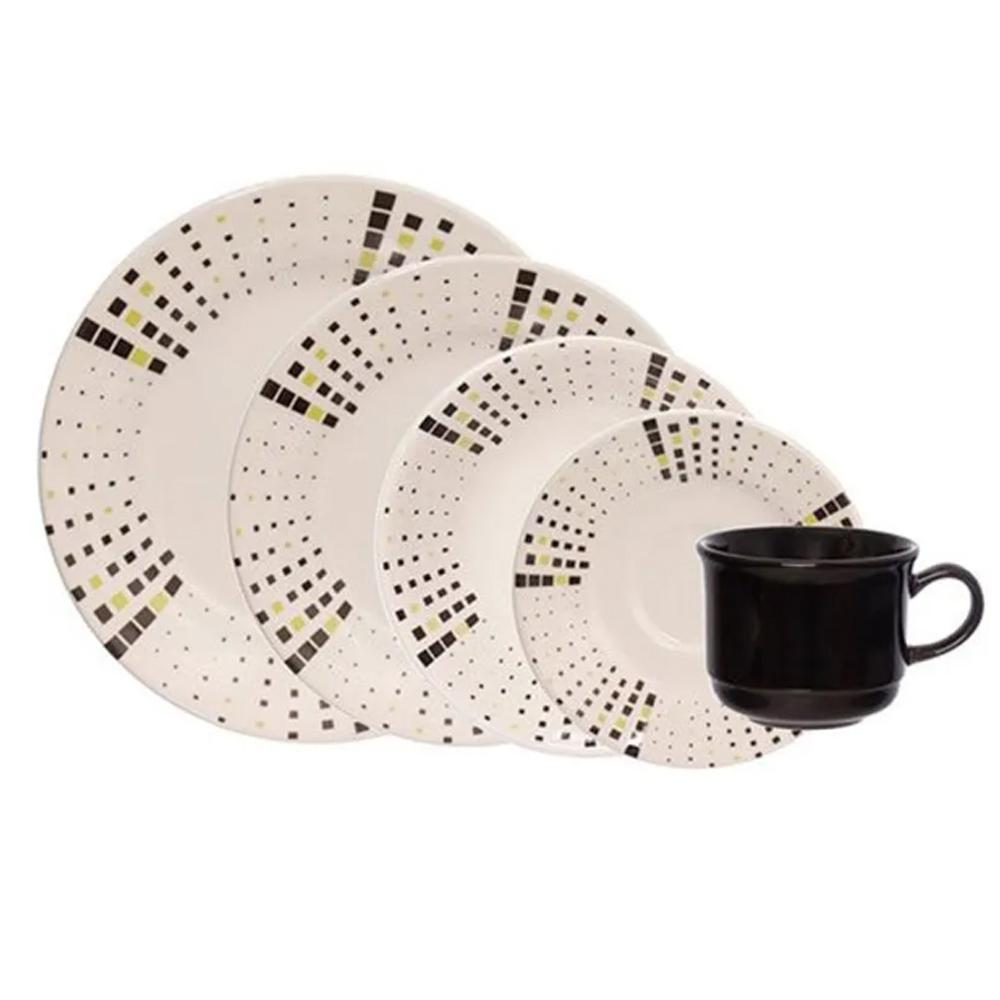 O Jogo de Jantar Corona Malaya em Cerâmica é uma coleção elegante e prática, perfeita para transformar suas refeições em momentos especiais. Composto por 16 peças, o conjunto inclui 4 Pratos rasos, 4 Pratos fundos 4 Xícaras de chá, 4 Píres de chá.Todos feitos em cerâmica de alta qualidade, que garante durabilidade e um acabamento bonito. Seu design clássico e sofisticado traz um toque de charme à sua mesa, ideal para o dia a dia ou ocasiões especiais. Além de bonito, o conjunto é resistente e fácil de limpar, podendo ser lavado na lava-louças para maior praticidade. Com o Jogo de Jantar Corona Malaya, suas refeições ficarão ainda mais agradáveis e cheias de estilo!
