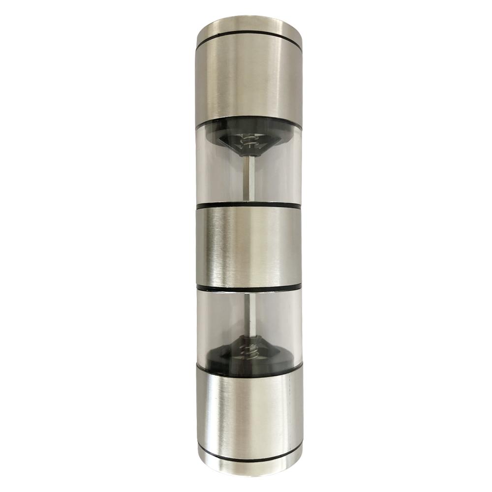 Moedores Mill 2 em 1 é usual para sal e pimenta, feito em acrílico e aço inox 5,6X21cm. Ficou muito mais prático moer o sal ou pimenta para temperar seus alimentos. Com design elegante, possui engrenagens de alta resistência e durabilidade. Tem regularem do tamanho do grão para você usar na medida certa e deixar seus alimentos com aquele gostinho delicioso e sabor de quero mais.