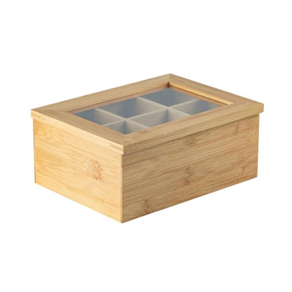 O Organizador de Chá com 6 Divisórias transforma a experiência de servir, para uma rotina com mais conforto e conexão com o lar. Possui divisórias e tampa com visor transparente para facilitar a visualização e organização dos sachês. O bambu promove a sustentabilidade de um material 100% renovável, e traz sofisticação para decorar a sua casa.